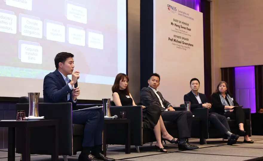 パネリストとして、 ティモシー・ゴー氏(Dechert LLPパートナー)、フランツィスカ・ツィンマーマン氏(Temasek持続可能性・気候変動担当ディレクター)、リー・ウェイリン氏(ラジャ・タン法律事務所 銀行金融部門サステナビリティ責任者兼パートナー)、マイケル・タン氏(シンガポール証券取引所上場政策・商品認可担当責任者兼サステナブルディベロップメントオフィス室長)が参加しました。